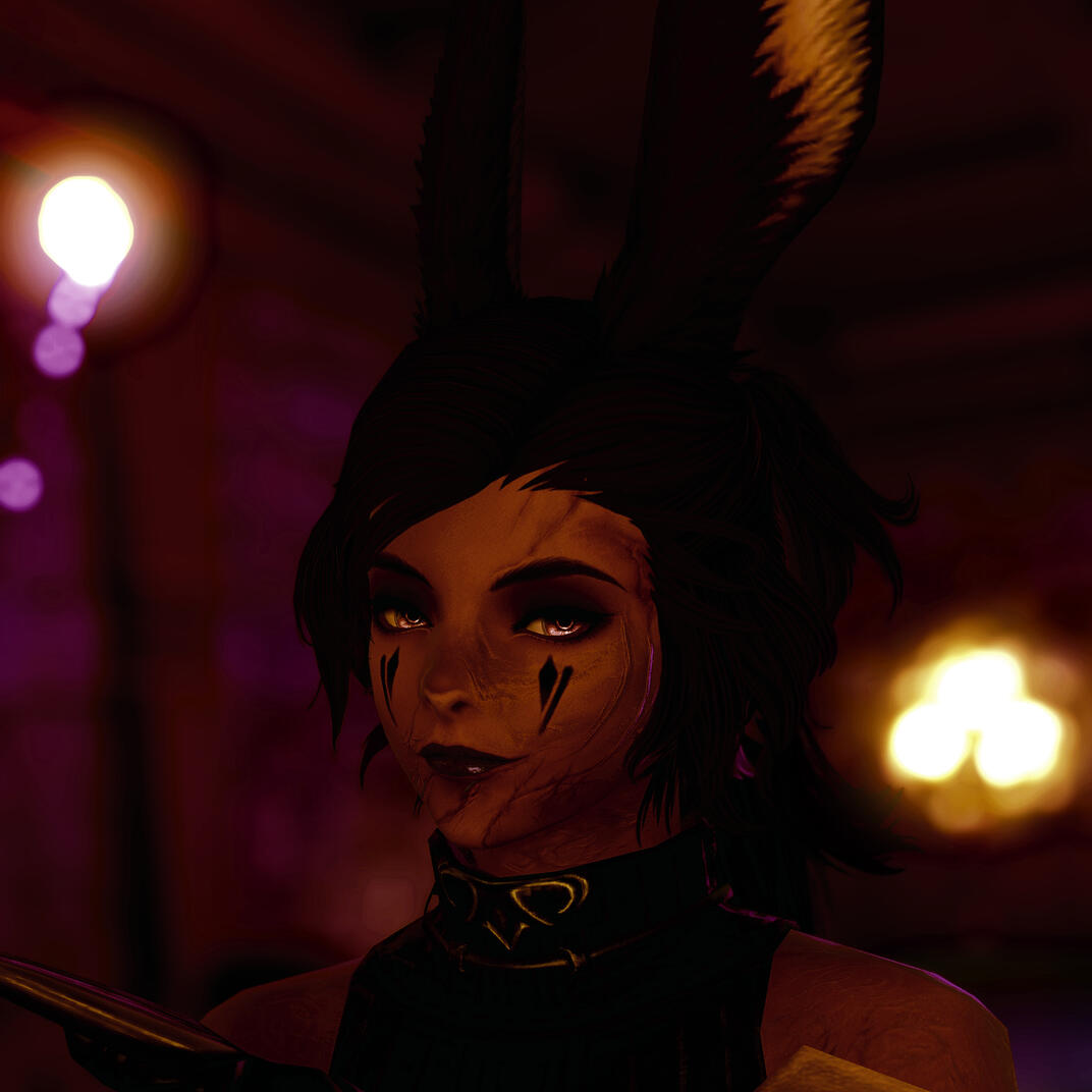 Ebony Rose is a Mercenary Bar founded by former Garlean soldier turned resistance leader, Kolgrim Hayashida and his husband Ryunosuke Hyashida.It is owned and operated by The Lady of the House, Styx and her companion, Kjat.The bar has a variety of drinks from simple ales to complex cocktails and a little of everything in between.Ebony Rose's staff offers companionship, from sitting and talking at the bar to something far more intimate, so if someone catches your eye don't be afraid to say hello, we don't bite... unless you ask us to.